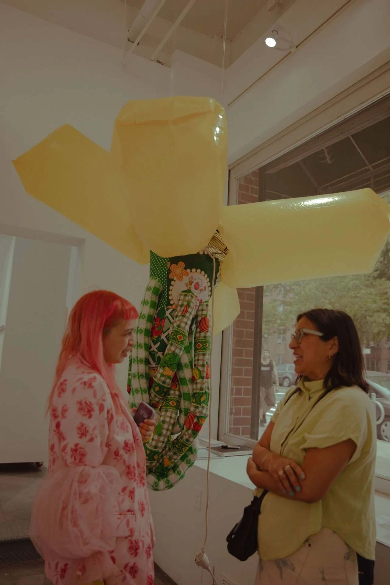 With these adaptions, the key elements were kept: the fabric, uplifting, amplification, and bricolage that covers, the ventilators that create the movement, and the lightbulbs—ultimately becoming my own interpretation of designed and fabricated technology coverings. The project went through different phases of trial and error, even in the plastic stage, to have different inflations, some more controlled, some more expanding, and keeping with the color palette of the fabric volumes of the phenomena, creating three cohesive sculptures that become a moving spatial installation.